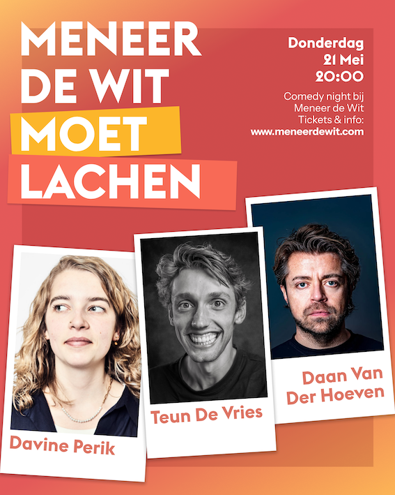 💥 Meneer de Wit moet lachen 💥 — een terugkerende comedyavond in Amsterdam-West.
